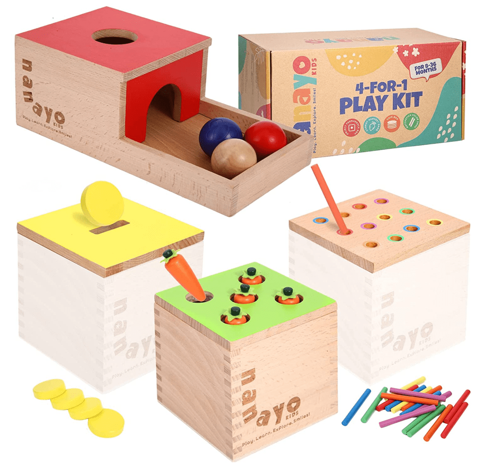 This collection of baby Montessori toys helps develop hand-eye coordination, critical thinking and problem-solving in little learners.