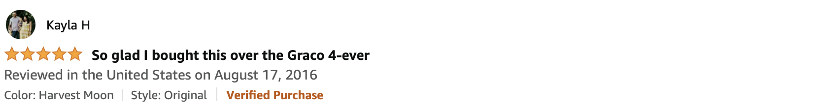 Would recommend this seat to anyone in the market for one, and at a much better price than the Graco 4ever seat.”