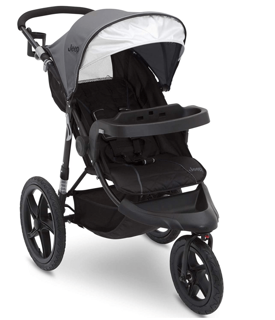 “I love this jogger! This jogging stroller is lightweight and easy to push. This stroller made it so easy to explore the outdoors and run around the park with my children. The ride was so smooth even over bumpy terrain and grass. It also folds easily with an easy pull of the levers under the handlebar. My daughter loved having a snack tray to put her snacks on and I loved that it was easily removable so that I could take her in and out of the stroller. The basket underneath the stroller is spacious and easily fit our diaper bag. The handlebar is made out of soft foam and there two removable cup holders for drinks. I also love that I can switch back and forth from a front swivel wheel. This stroller is the perfect jogging companion and I look forward to bringing it along for all of our adventures.”