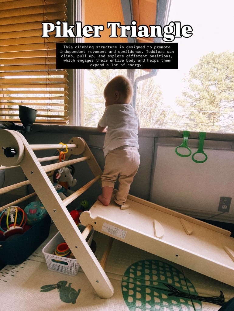 5. Pikler Triangle Climbing Toy A Pikler triangle is a climbing structure designed to promote independent movement and confidence in toddlers. As they climb the rungs, they are strengthening their arms and legs, improving their balance, and learning to assess risk in a safe environment. It’s a purposeful toy that encourages exploration and physical accomplishment.With these toys, you can turn a dreary winter day into a fun and active adventure right in your living room.