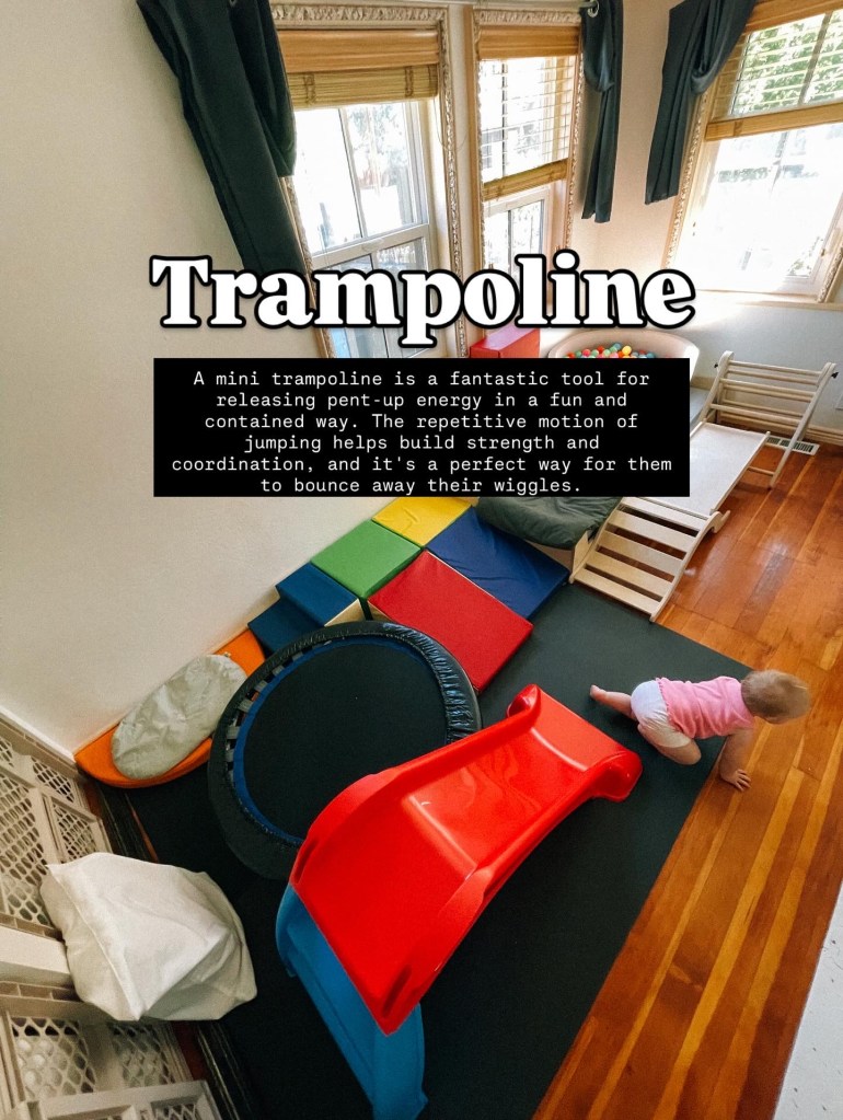 2. Indoor Trampoline There’s nothing like a mini trampoline to get the blood pumping! Bouncing is an excellent form of exercise for toddlers, helping them build muscle strength and improve their proprioception (their body’s sense of position and movement). It’s a contained and safe way for them to jump to their heart’s content.